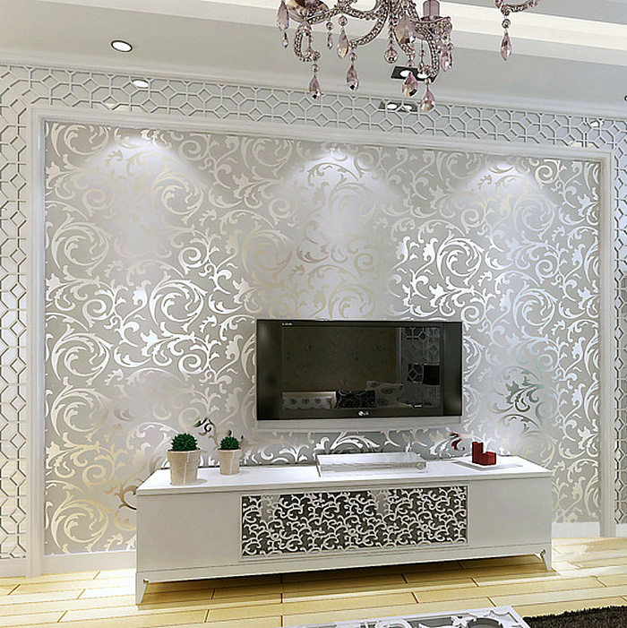 欧式卧室客厅影视加厚电视背景墙墙纸 3d植绒浮雕环保无纺布壁纸热门设计联盟服务商