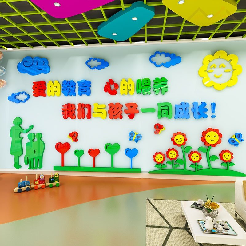 补习班布置3d立体墙贴幼儿园R教室幼教中心早教托管班文化墙面装热门设计联盟服务商