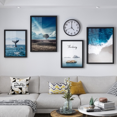 。现代画轻艺术背景墙壁画画客厅装饰f高档奢简约沙发钟表墙面餐热门设计联盟服务商