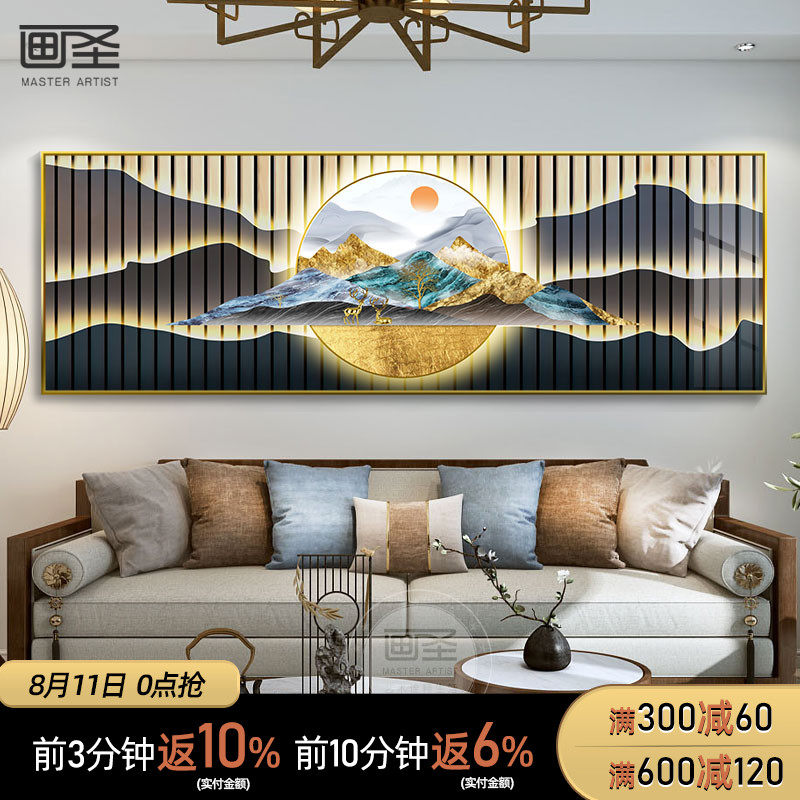 新中式客厅装饰画现代轻奢沙发背景墙山水挂画大气横幅金山壁画鹿热门设计联盟服务商