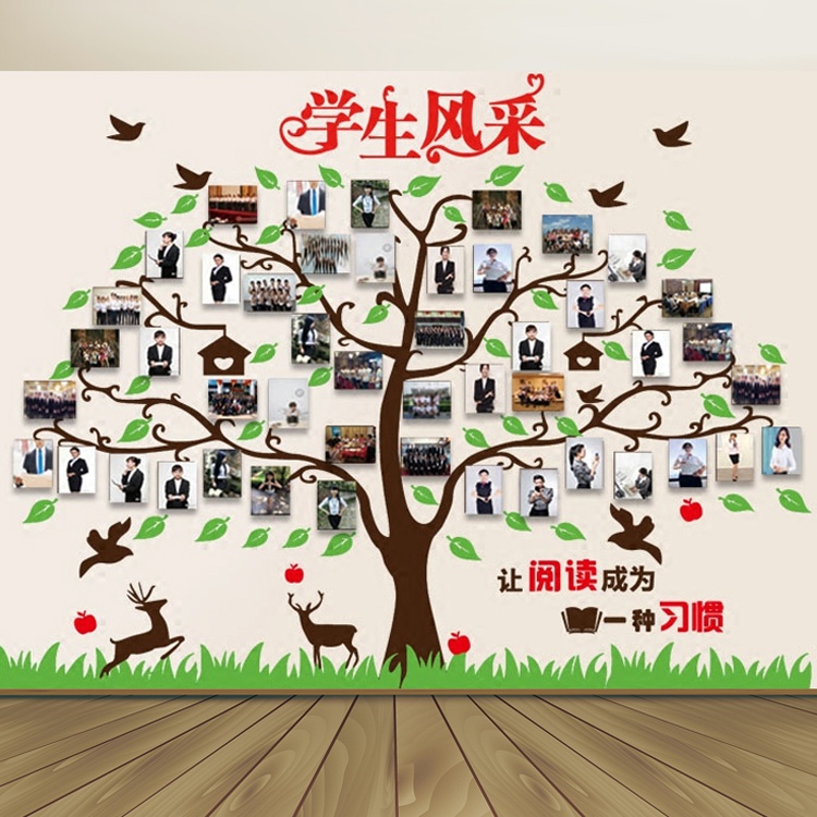 学生员工风采大树照片墙贴公司企业学校幼儿园文化墙壁相片框贴。热门设计联盟服务商