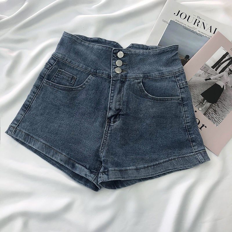 高腰牛仔短裤女2021夏季新品韩版ins复古金属链条设计感a字阔腿裤热门设计联盟服务商