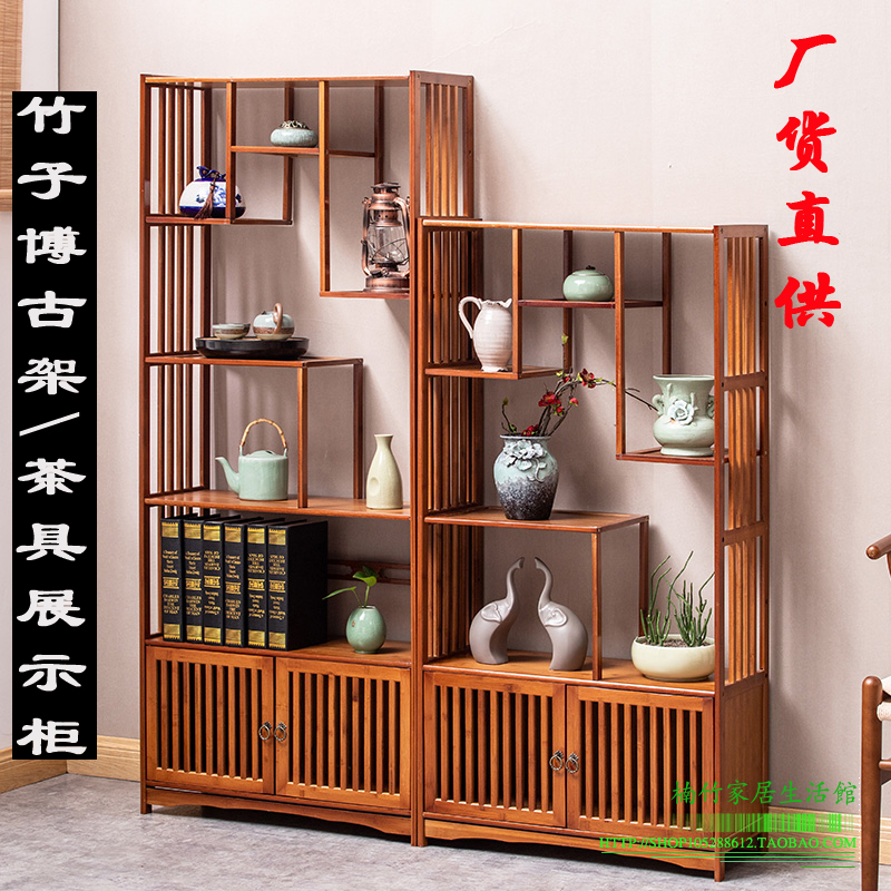 竹子博古架隔断实木中式多宝阁小摆件玄关置物柜 茶叶茶具展示柜热门设计联盟服务商