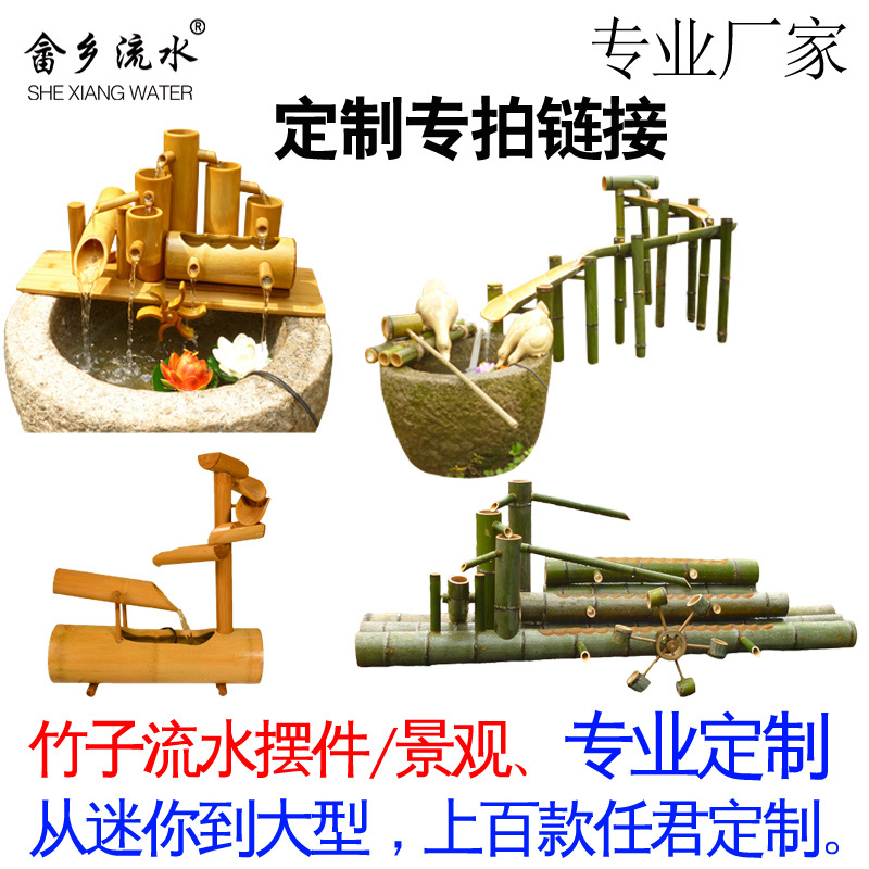 大件流水景观喷泉定制设计 大型水车竹子流水器 景观装饰造景定做热门设计联盟服务商