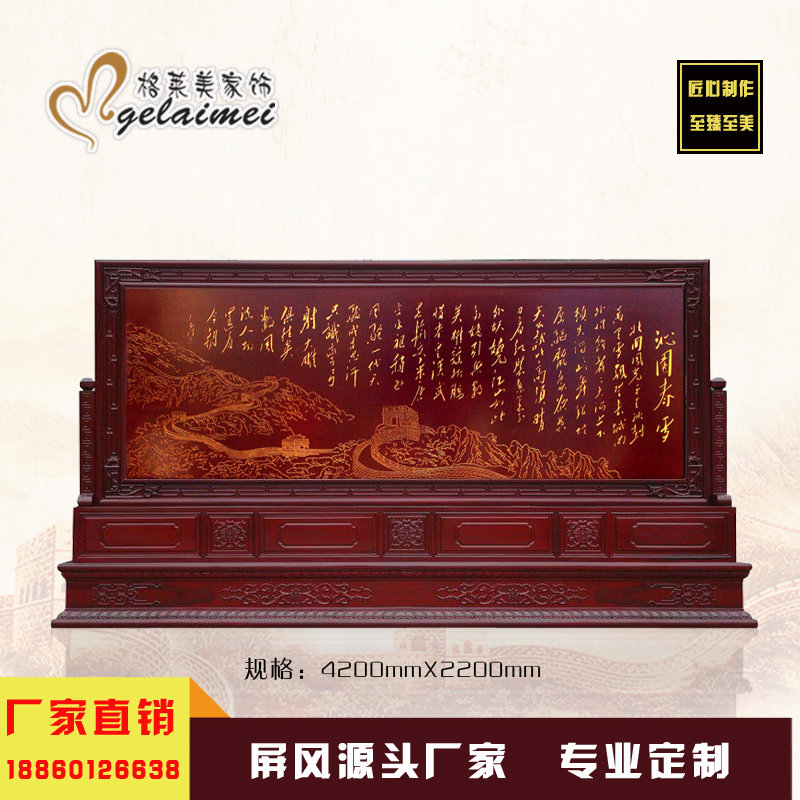 实木雕刻屏风隔断客厅玄关企业单位办公室大厅定制中式字画座屏风热门设计联盟服务商