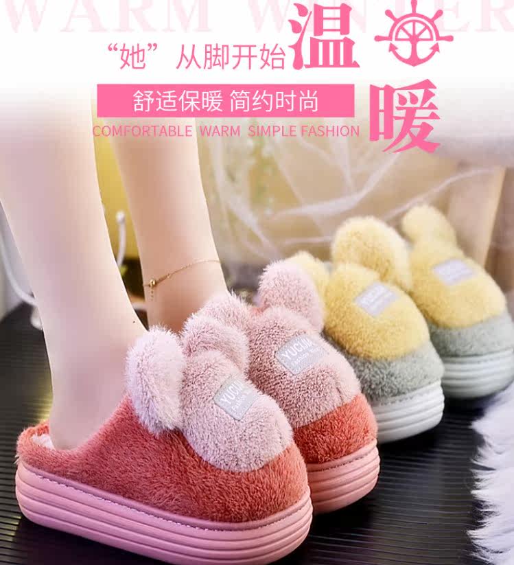 2021冬季新款棉拖鞋女居家保暖韩版卡通厚底防滑毛毛绒包头月子鞋热门设计联盟服务商