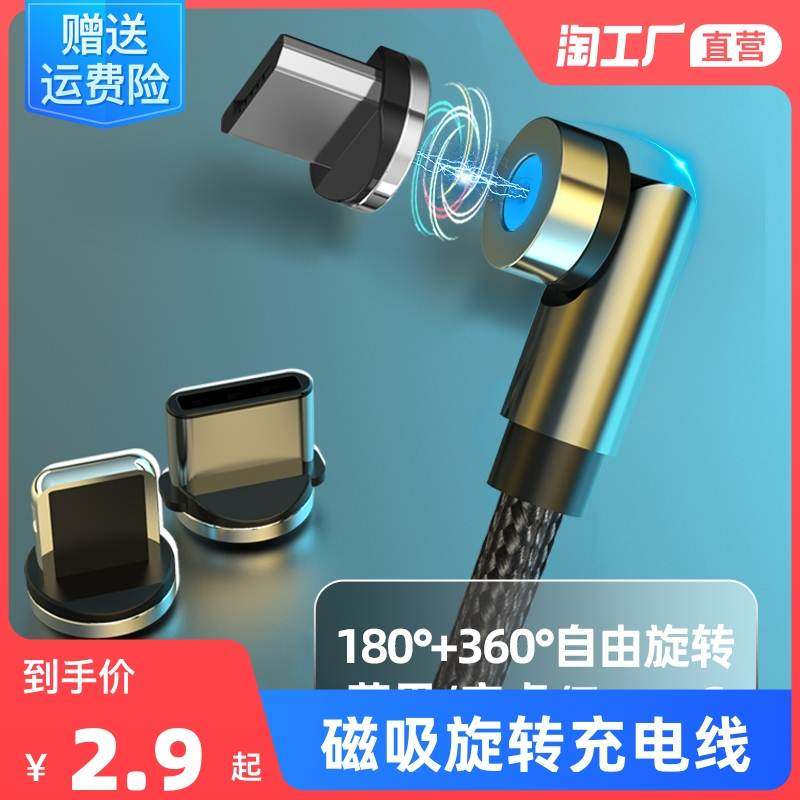 旋转磁吸数据线三合一适用于苹果安卓type c华为通用手机充电线热门设计联盟服务商